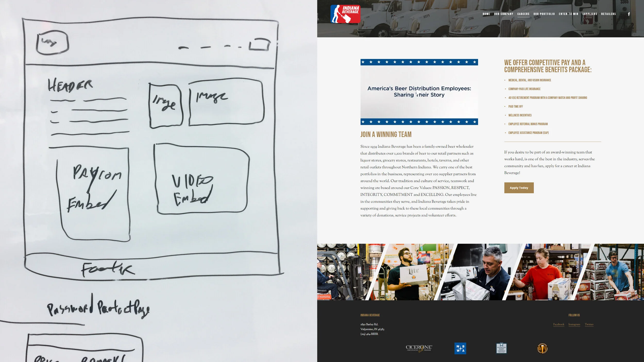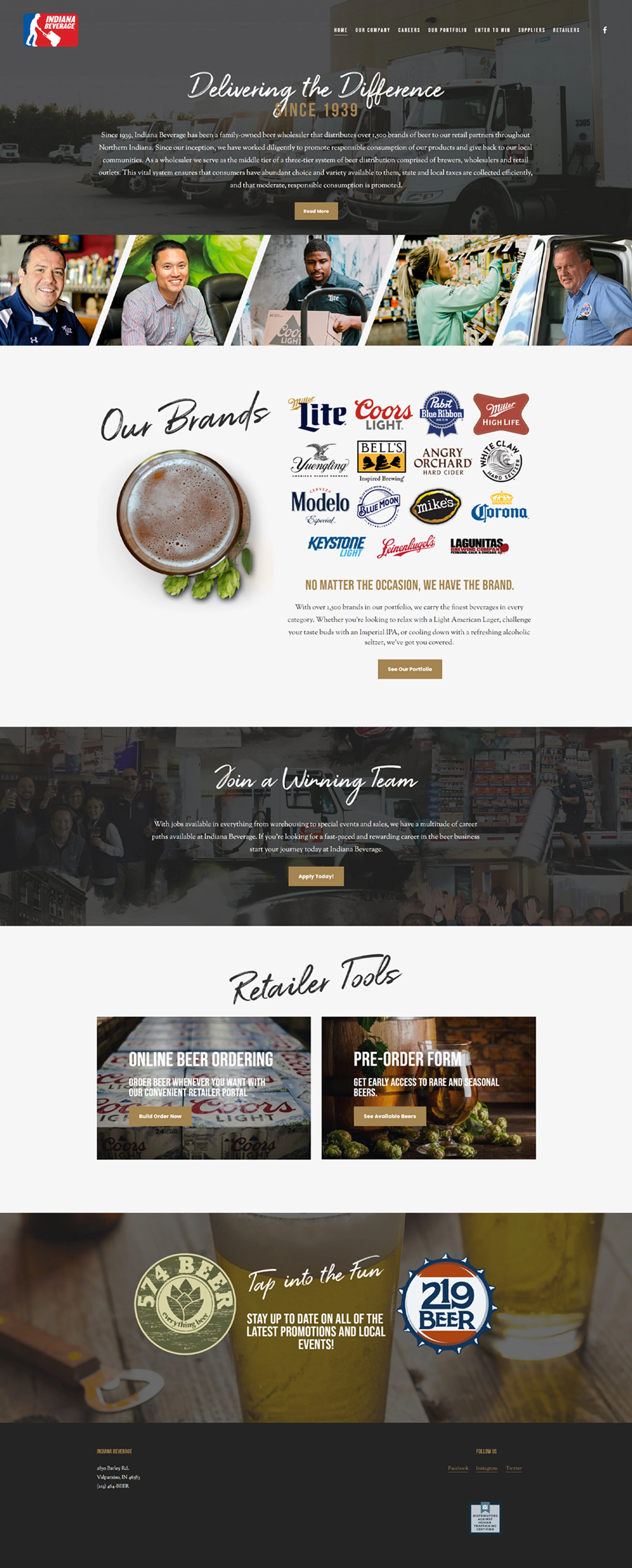 On the prospective employee side, the objective of the new site was to create a sense of Indiana Beverage’s culture to connect with and inform the job seekers before they apply. This approach also reinforces the best-in-market reputation in the minds of retailers. Another feature on the retailer side is not only a repository of of price sheets, sell sheets, etc., but also a link to order online, pre-order rare and seasonal products and opt-in integrated email marketing to put any upcoming deals at the front of mind for retailers as well as reducing the time they have to spend searching though PDFs.